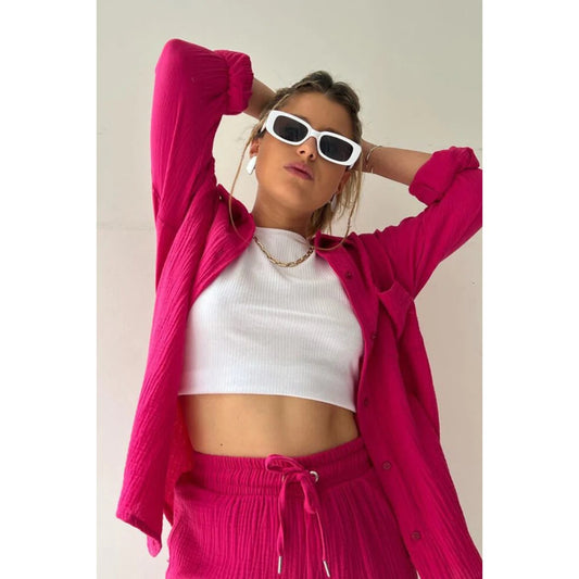 ALICE LEROY | ENSEMBLE FEMME D'ÉTÉ EN COTON COMPOSÉ D'UN SHORT ET D'UN CHEMISIER