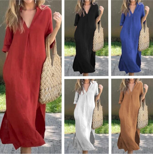 ALESSIA | ROBE EN LIN DÉCONTRACTÉE AVEC ENCOLURE EN V